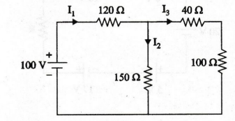 In the circuit shown in figure, find the value of current through 100 Ω.