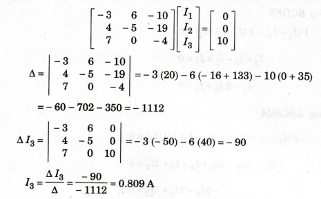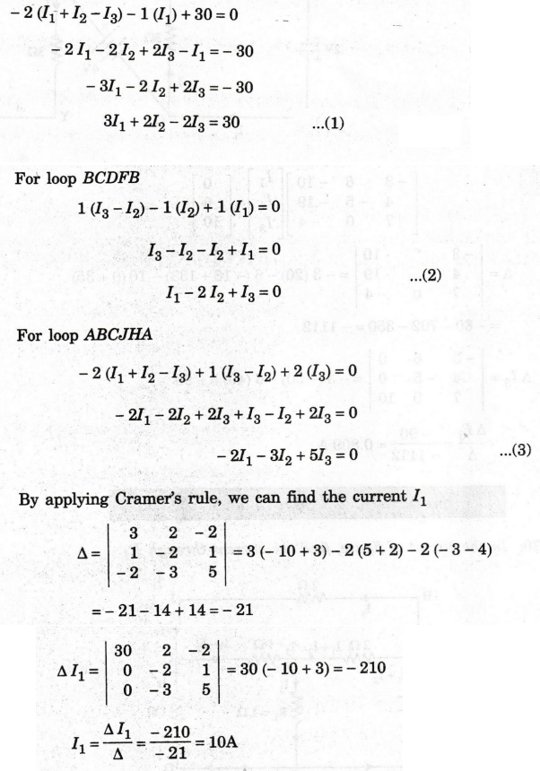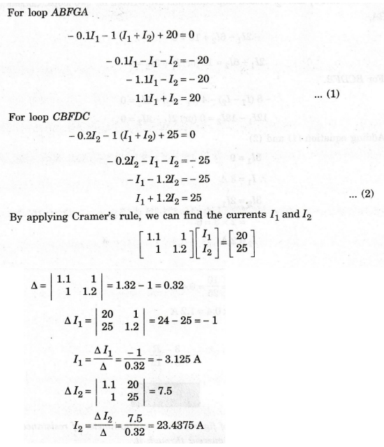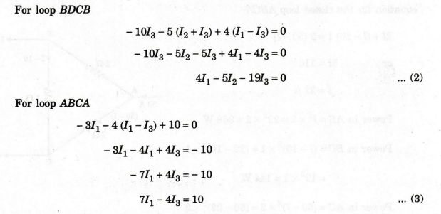 currents are marked as in figure. Kirchhoff's voltage law is applied to the various