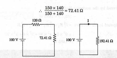 Ω and 72.41 Ω are connected in series, 120+ 72.41 = 192.41 Ω