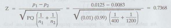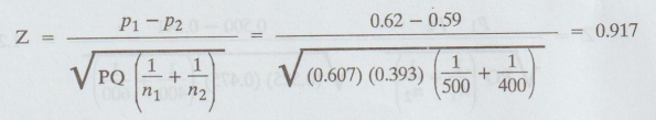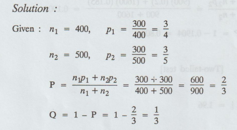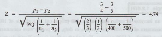 Statistics and Numerical Methods: Unit I: Testing of Hypothesis : Tag: : Solved Example Problems | Testing of Hypothesis | Statistics - Large sample test for difference of proportions