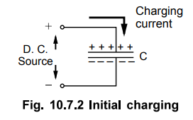 • Let the capacitor is initially charged from a d.c. source with the polarities as shown in the Fig. 10.7.2.