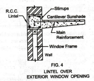 4 shows a lintel provided over a window opening in an Exterior Wall. R.C.C.