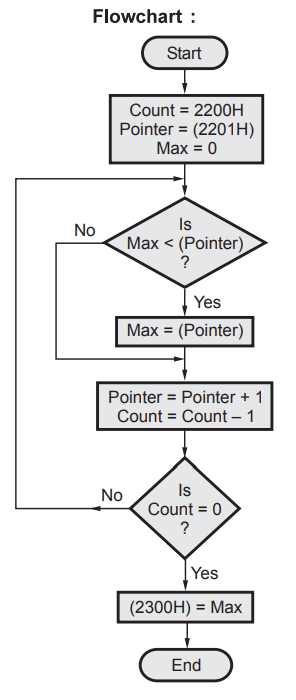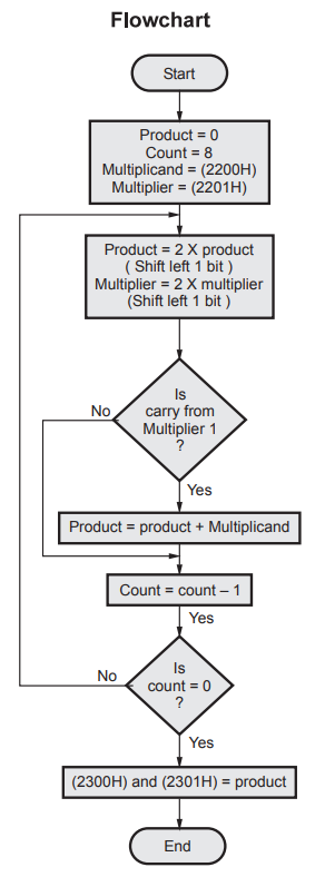 Question : 1. Explain the loop structure with counting and indexing in 8085 programming. 2. Write an assembly program to multiply a number by 8 program using the rotate instruction. 3. Write an assembly language program for arranging an array of 8-bit unsigned number in ascending order. 4. Write an assembly language program for adding a set of a numbers. 5. Write an 8085 Assembly language program to multiply two numbers in memory locations 4200 and 4201 and store the product in memory locations 4202 and 4203.