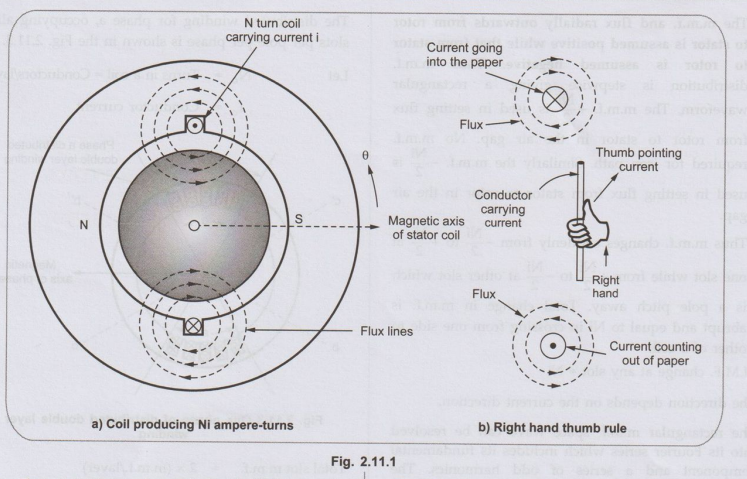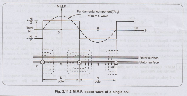 stator and m.m.f. wave are shown in the Fig. 2.11.4.