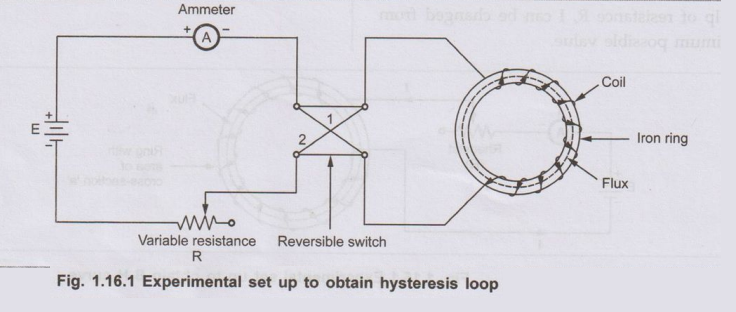 Electrical Machines: Unit I: a. Magnetic Circuits and Electromagnetism : Tag: : Experimental Set up, Steps, Graph, Theory - Magnetic Hysteresis