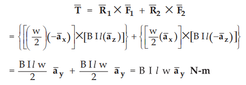the total torque from the left conductor and the right conductor is given by,