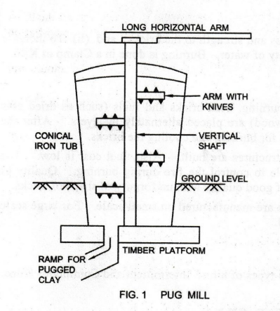 Fig. 1. Pug Mill consists of a Conical Iron Tub. A Vertical Shaft is provided