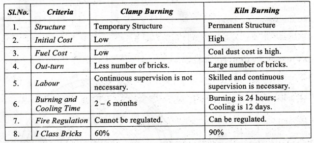 quantity of water. Burning is done in a Clamp or Kiln.