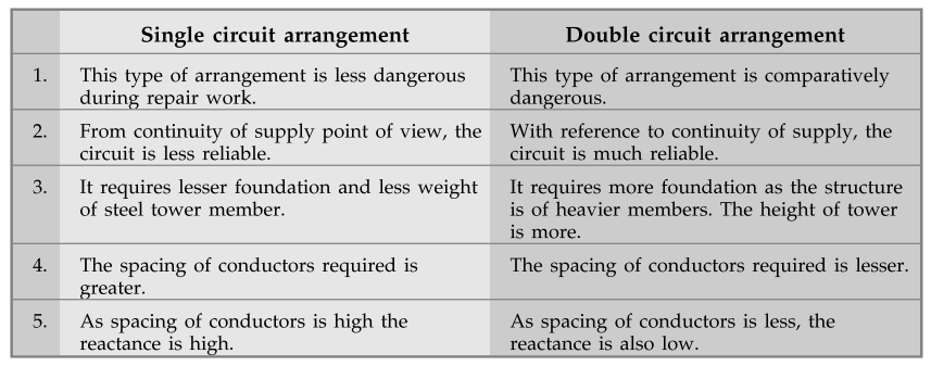 2. Compare single circuit and double circuit arrangements of