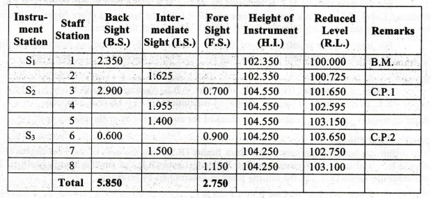 of Instrument (H.I.) at S2 = R.L. of point 3+ B.S. = 101.650 + 2.900