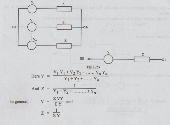 Statement: (For voltage sources): In any network, if the voltage V1, V2,.......Vn with internal independences Z1, Z2,......... Zn respectively, are in parallel, then, these sources may be replaced by a single voltage source V in series with Z.