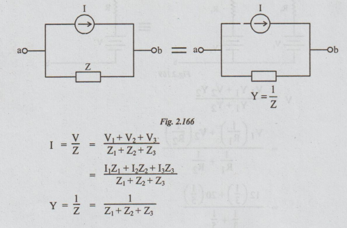 Consider 3 current sources of I, I, and I, having internal impedances Z1, Z2 and Z3 connected in series. Our aim is to replace the same by a single source.