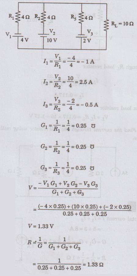 Electric Circuit Analysis: Chapter - 2: Network Theorems - DC : Tag: : Statement, Proof, Circuit Diagram, Formula, Solved Example Problems - Millman's Theorem
