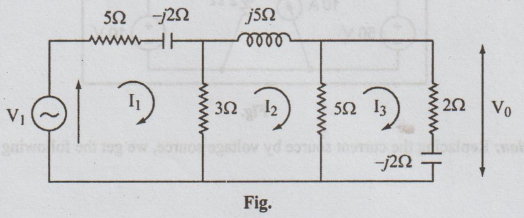 the (2 - j2)Ω impedance. Find the source V1 which corresponds to V0=50°