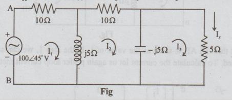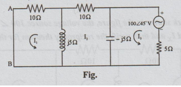 the figure, the voltage source 100 ∠45°V