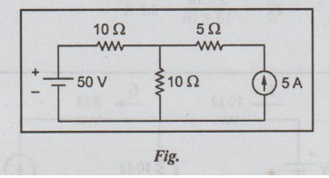 voltage source and find the current delivered by the 50V voltage source. (8)