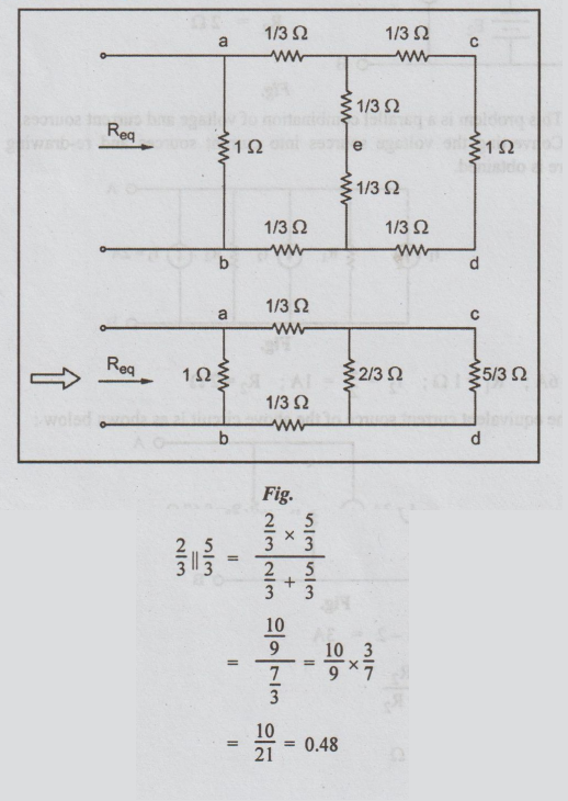 1 × 2 / 1+2 = 2/3 = 0.67 Ω