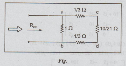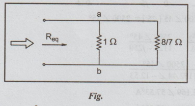= Rab = 1× 8/7 / 1 + 8/7 = 0.533 Ω