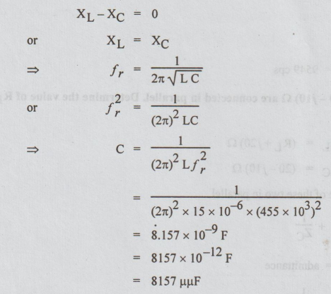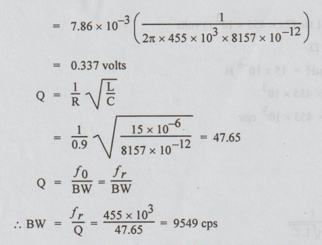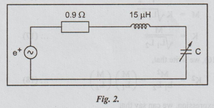the circuit shown in Fig. is e(t) = 0.01 sin (2π × 455 × 1031) V.