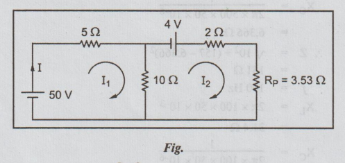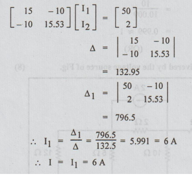 circuit of Fig. has two meshes, hence we can assume two mesh currents as shown in the Fig. The mesh basis matrix equation is