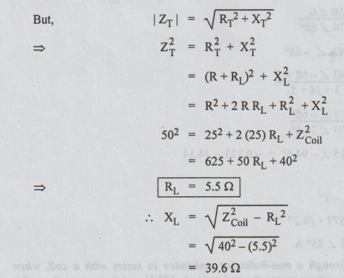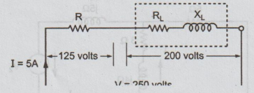 coil, when supplied at 250 V, 50 Hz. If the voltage across the resistance is