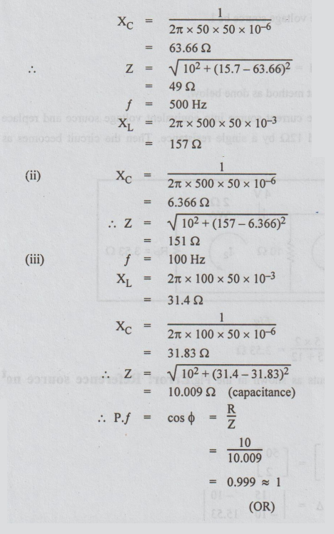 the frequency is (i) 50 Hz, (ii) 500 Hz, (iii) Power factor at 100 Hz.