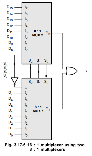 16 : 1 multiplexer and one 2 : 1 multiplexer. Here, select lines S0,