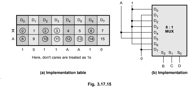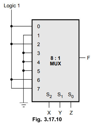 3.17.15 shows the implementation of given Boolean function using 8 : 1