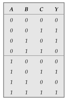 expression for given truth table is∑ m (1, 2, 5, 7).
