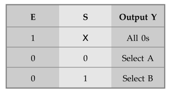 disables them in the 1 state. When E = 1, outputs have all 0's, regardless of