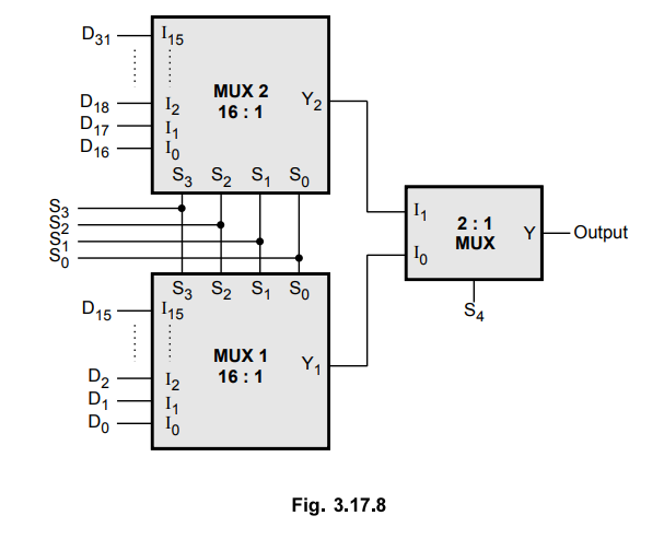 3.17.3 Draw 32 : 1 multiplexer using two 16:1 multiplexers and one 2 : 1
