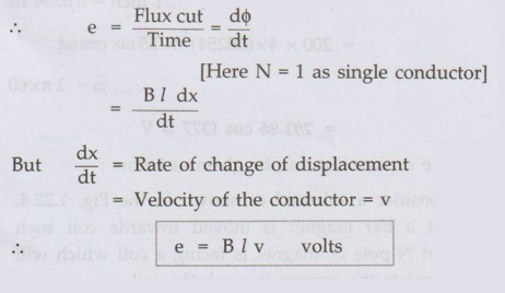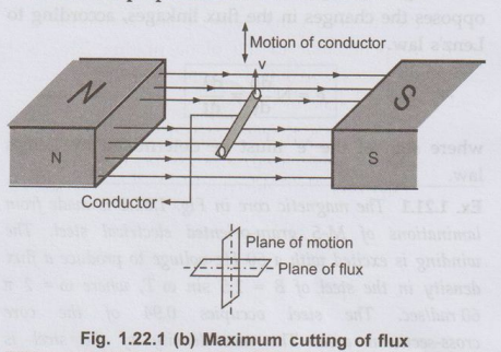 Consider a conductor moving with velocity v m/s such that its plane of motion or direction of velocity is perpendicular to the direction of flux lines as shown in Fig. 1.22.2 (a).
