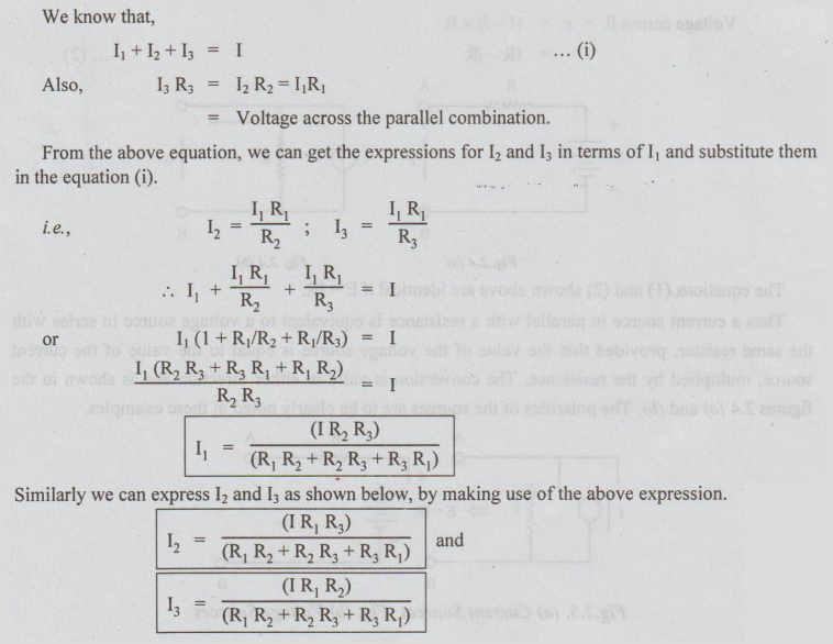 equivalent resistance and the expressions for branch currents. Refer Fig.1.12