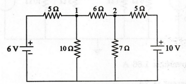 Find the voltages of the nodes 1 and 2 in the network shown in figure by