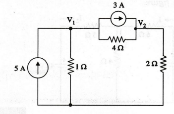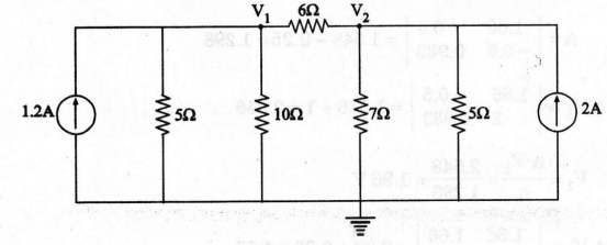 108: For the circuit given find the node voltages V1 and V2 using nodal
