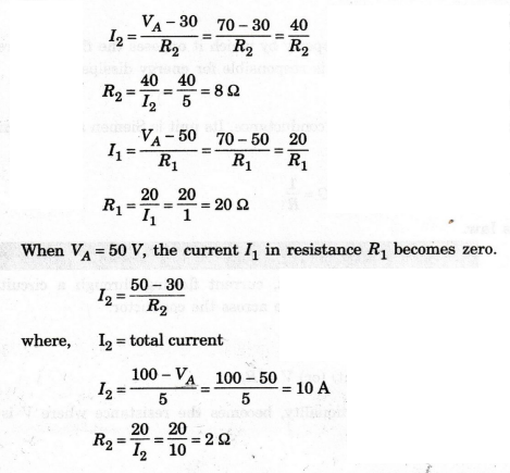 node 1, the current is 5A. At node 2, the current is 10 - 19 A