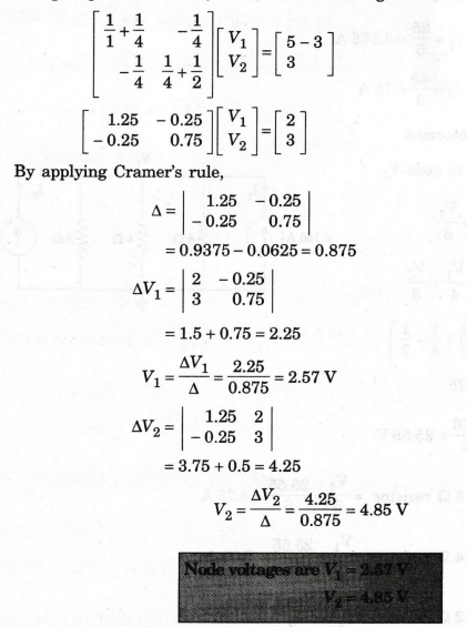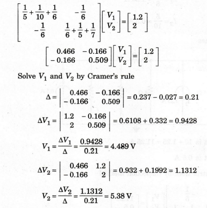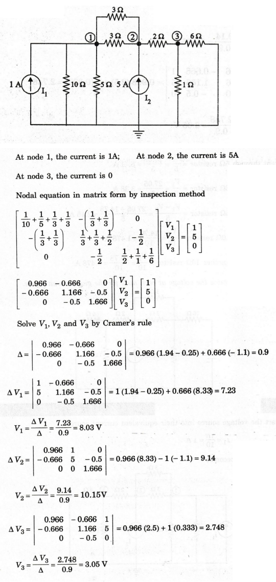 solving this matrix, we can find out nodal voltages V1, and V2.
