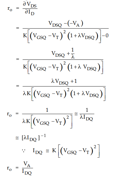 From equation (4.4.1) we can evaluate the output resistance at the Q point as