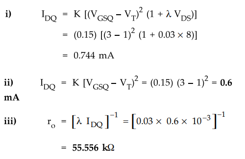 = 1V, K= 0.15 mA/ V2, X = 0.03 V-1 = 8V