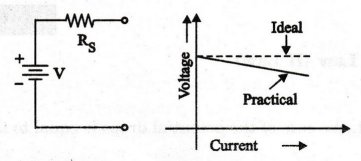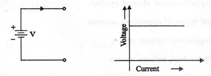 Ideal voltage source is a source which delivers energy with specified terminal voltage, which is independent of the current supplied by the source. Such a voltage which source maintains constant specified voltage for all currents supplied by the source is called an ideal voltage source. For ideal voltage source, the internal impedance is zero.