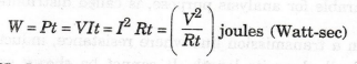 W = Pt = VIt = I2 Rt = (V2 / Rt ) joules (Watt-sec)