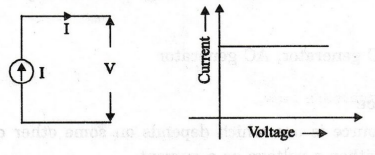 The ideal current source is a source which delivers energy with a specified current which is independent of the voltage at its terminals. Such a current source which maintains a constant specified current for all voltages is called an ideal current source.