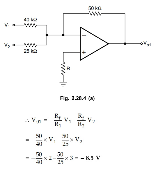 circuit works as inverting summer circuit, as shown in the Fig. 2.28.4 (a).