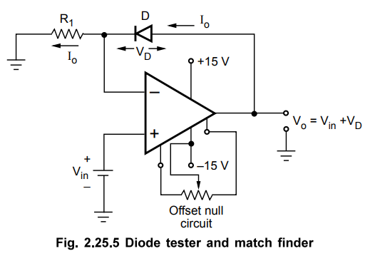application of V-I converter is a diode tester and diode match finder. The resistance RL is replaced by a