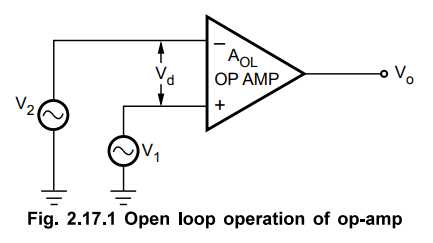 The simplest possible way to use an op-amp is in the open loop mode. The Fig. 2.17.1 shows an op-amp in the open loop condition.