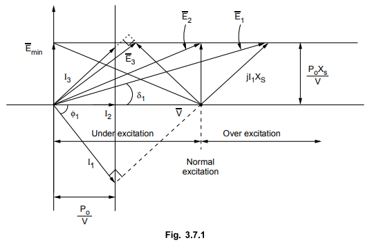 If the field current of the alternator is varied to change the excitation e.m.f. E, the power angle δ chrnges m such a way as to maintain E sin 8 constant.