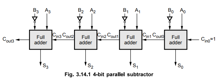• The subtraction of binary numbers can be done most conveniently by means of complements. Remember Cout3’ that the subtraction A-B can be done by taking the 2's complement of B and adding it to A.