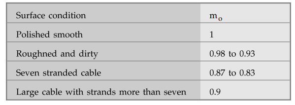 different denoted as mv. Its value is 1.0 for polished conductors, 0.98 to 0.93