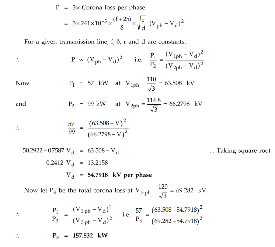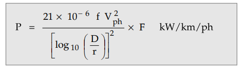 P = 3 × Corona loss per phase