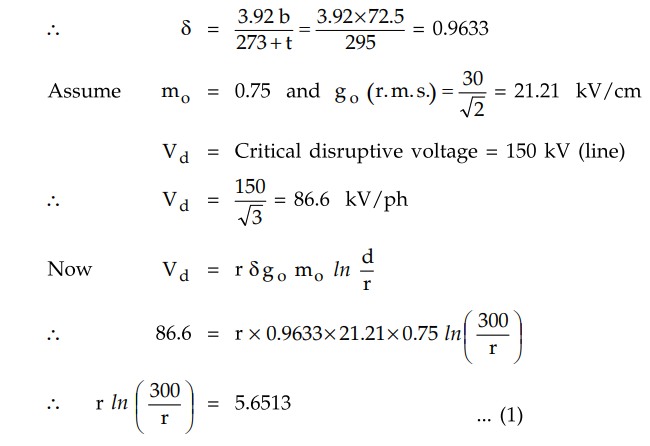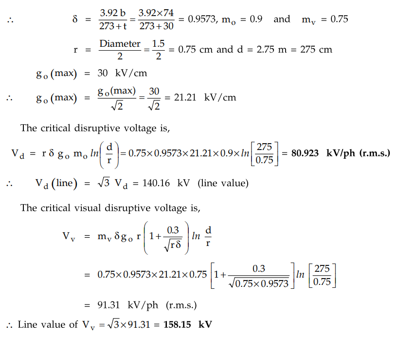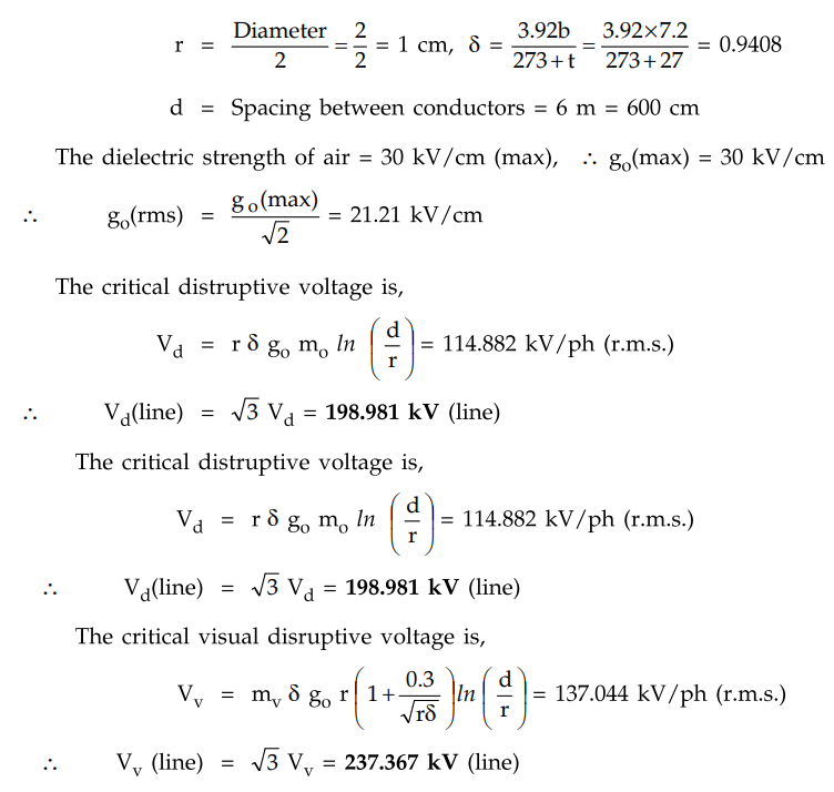 find the critical disruptive voltage for the line. Air density factor 8 = 0.952